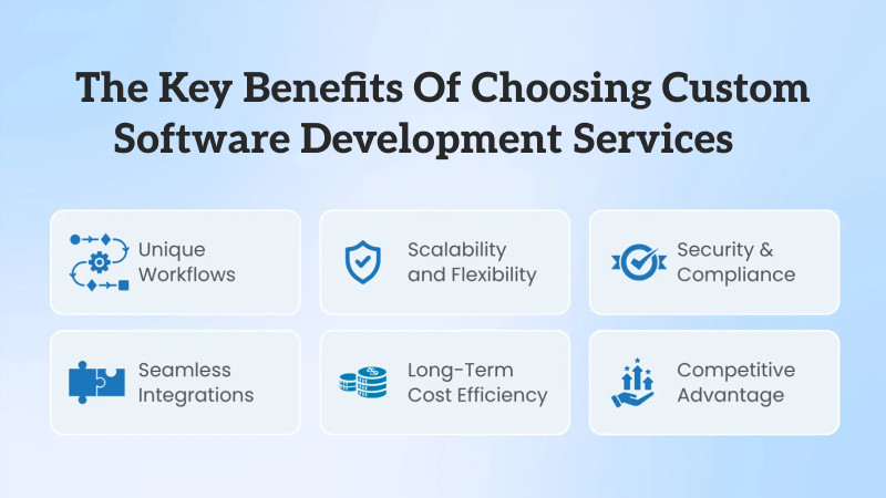 Businesses today face unique challenges and opportunities that often cannot be solved with generic software. Custom software can be more expensive to start with, but less expensive in the long run. The companies save money by avoiding features they do not need, unnecessary licensing, and workarounds that generic solutions require. Tailor-made systems are needed to address specific requirements, reducing downtime and maintenance problems. When custom software development services are invested in, the long-term benefits are realised through increased returns on technology investments.
